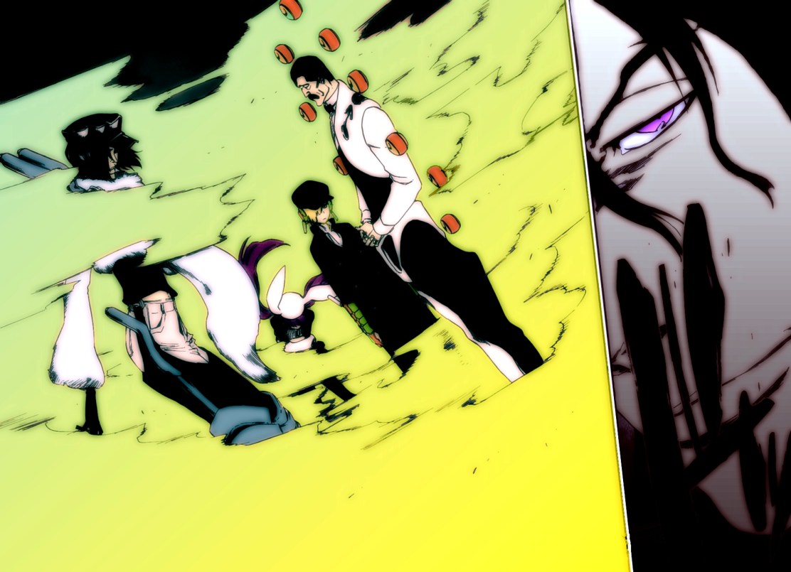 Although you may have noticed I said “or most”, my reason for this suggestion would be; as we look at Riruka Dokugamine in both of the images above! We can see that she has not transformed into her Fullbring, but in fact she is bending down as if she’s been cut! If you’ve read the manga, you would have noticed that there is a blood like pattern on the manga page 18! And Riruka’s posture may suggest she’s been injured by Ginjo on purpose!