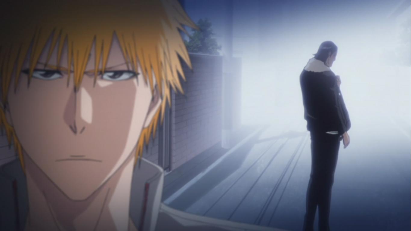 After the opening, Ichigo went to his high school and began a normal school day by meeting up with his friends and doing nothing but chilling in his class. During his class, Ichigo notices Ishida going to kill a rampaging Hollow.