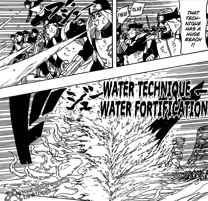 As you can see the images above, Uchiha Madara’s Katon Gouka Mekkyaku has really done a number on the shinobi force. This means that many shinobi’s from the allied force have had to join up their water technique and go an all out just to match with Madara’s Gouka Mekkyaku.