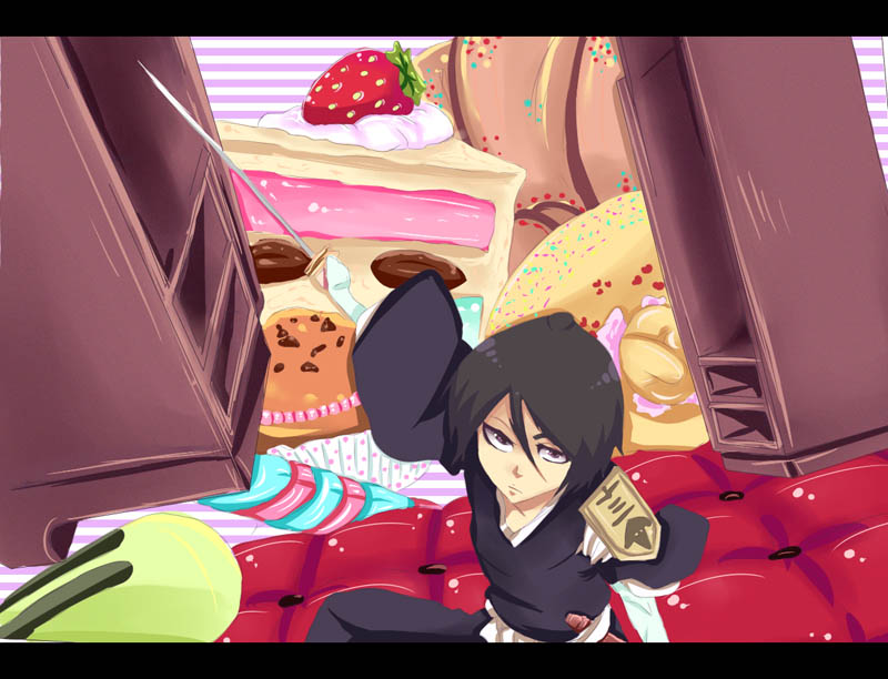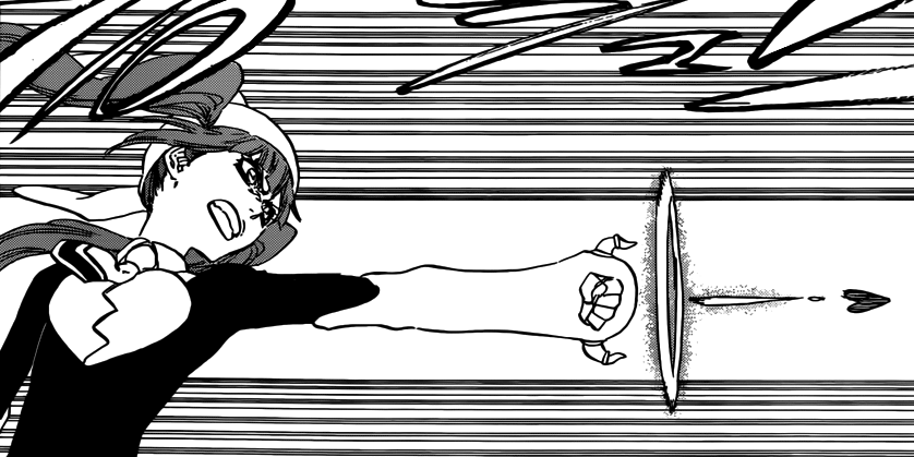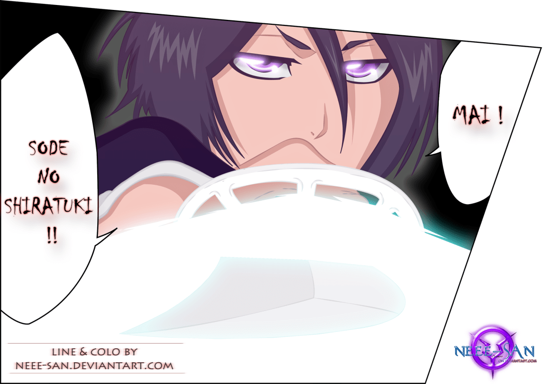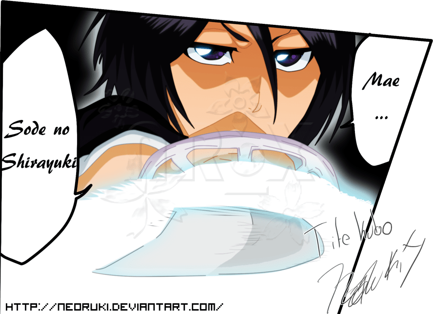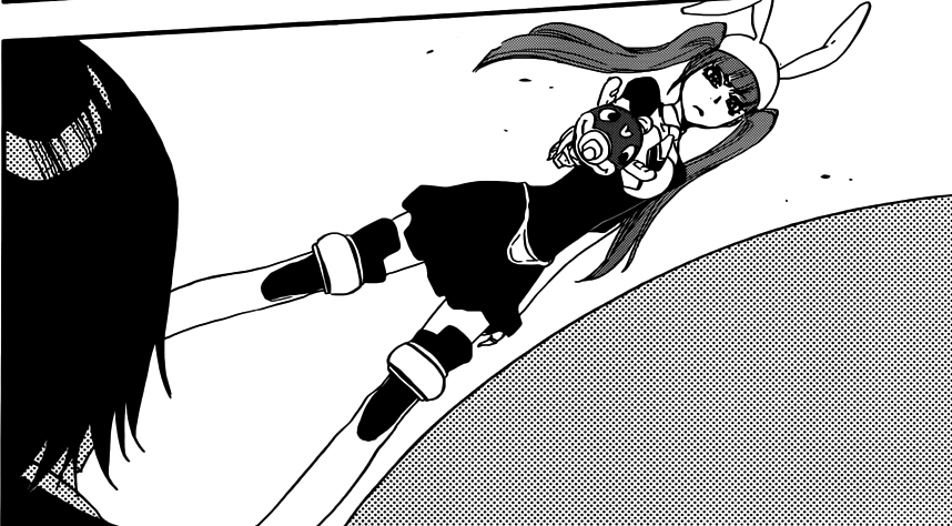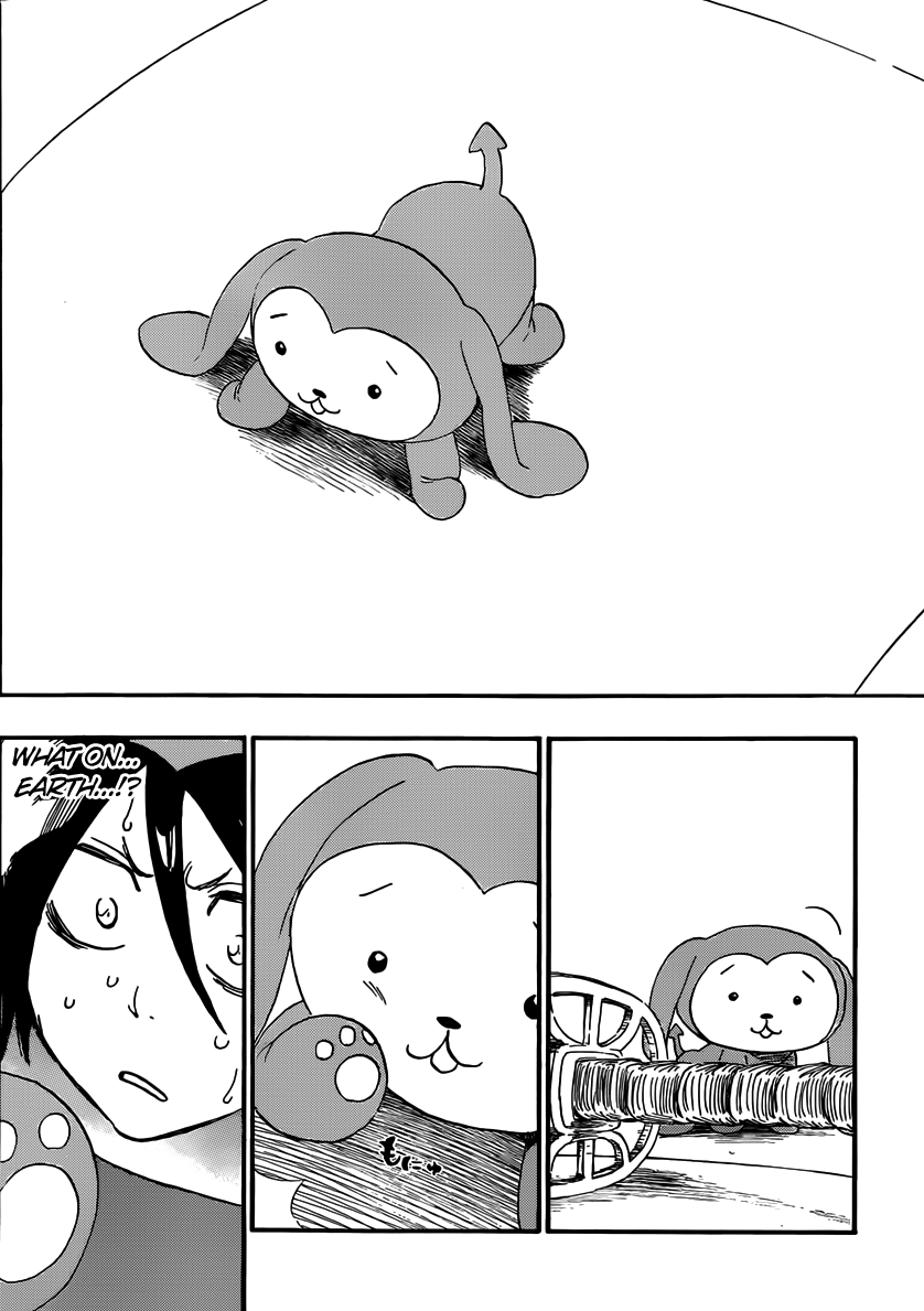 Rukia in this chapter isn’t able to hurt cute things which Riruka Dokugamine is sending out of her hang gun. When Riruka sends a Cabinet, Rukia was able to cut that in half, as seen in the first image above. All because it wasnt cute!