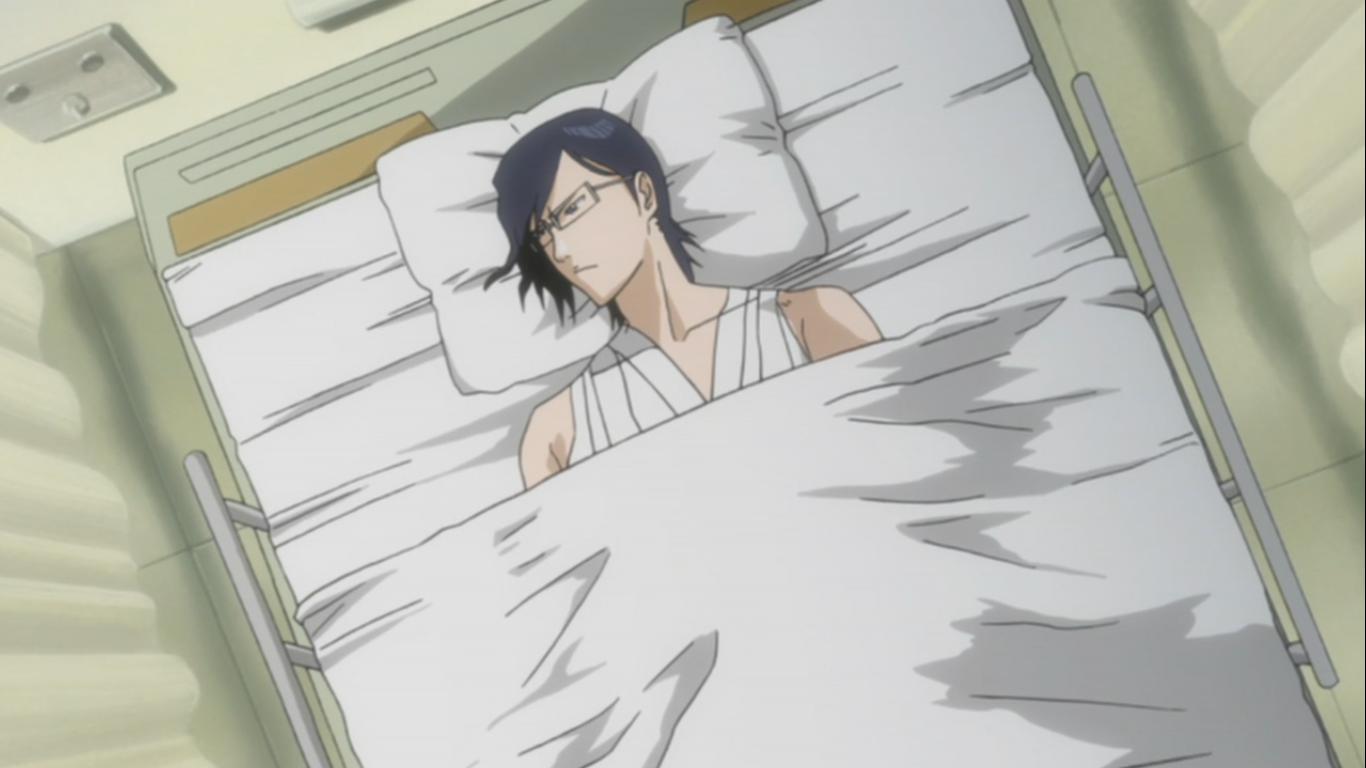 Bleach 345 starts by Ishida going to the General Hospital using an ambulance. Uryu Ishida has been treated by his father Ryuken Ishida, although he has done a good job of fixing him up, Ishida has to still take care of his wounds.