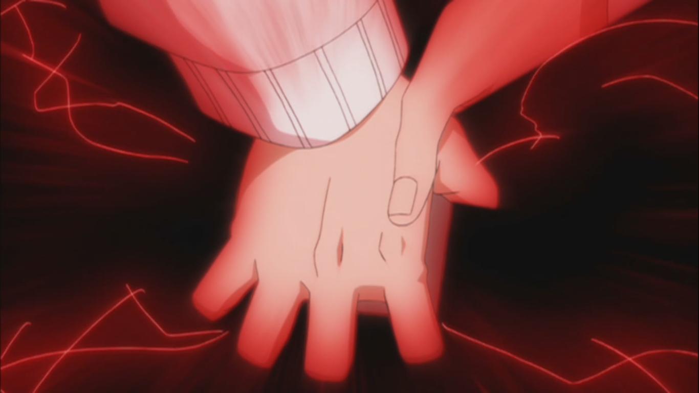 The guard-shaped Spiritual Pressure only comes out when Ichigo is holding the Combat Pass. Since this is a shield type weapon, Ichigo isn’t able to defeat the plush. So what he does is he holds the Combat Pass with two hands and in a split second he feels a sensation. This sensation was of the Getsuga Tensho! This allows him to produce a circular object which spins and hits the plush doll therefore paralyzing or killing him. “He did it!” Riruka states!