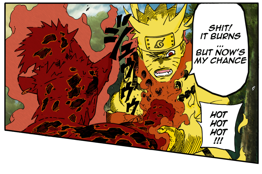 In today’s Naruto 565 Manga chapter, we see a proper fight between Jinchuuriki’s. Naruto finds out how these Impure World Resurrections are controlled as well as being kicked in the face by Han, the Five-Tailed Jinchuuriki.