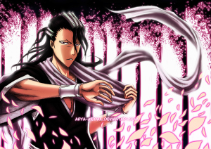 Byakuya is the captain of the 6th Division with Renji Abarai as his Lieutenant. Byakuya’s Bankai Senbonzakura Kageyoshi is a larger version of his Senbonzakura Shikai. Byakuya drops his sword straight down. The sword phases into the ground, as though it were a pool of water. Energy ripples expand out, turning the surrounding area dark, and within seconds, two rows of a thousand giant blades rise up from the ground. Those thousand swords would scatter and countless flying blades pierce the enemy. No one knows the exact number of blades generated and no one can see the movements of those blades or even dodge them. The number of blades is great enough that Byakuya can use them for defense as well as offense at the same time. He commonly forms them into large masses, designed to obliterate opponents instantaneously. As it moves through the air like torrents of waves, it gives the appearance of cherry blossoms flowing swiftly along with the wind.