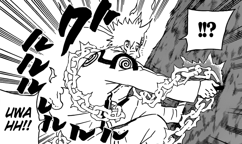 Naruto’s Multiple Shadow Clone Technique does the trick as Son quickly opens his mouth to hundreds or thousands of Naruto Clones coming out. Son tells Naruto to look at Son’s neck to find a stake stabbed there. That’s the source of the chakra chains that bind me.