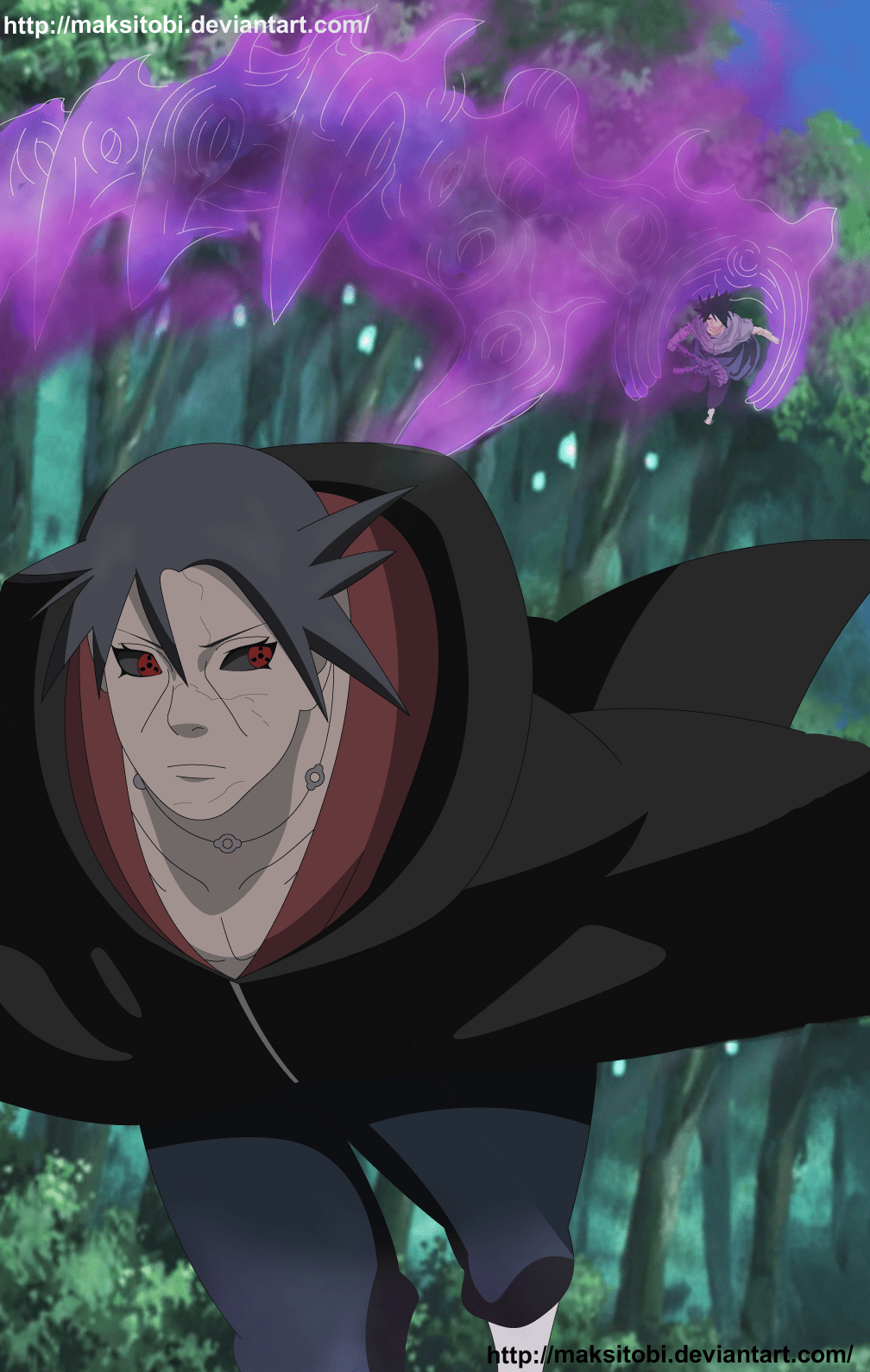 Itachi then reveals that Sasuke has changed over the time he was gone, Sasuke replies with that information being wrong, but instead Itachi himself had changed Sasuke’s past and future. Sasuke then thinks of the time where all of his peers had died, and tells himself that he should have also died instead of being kept alive.