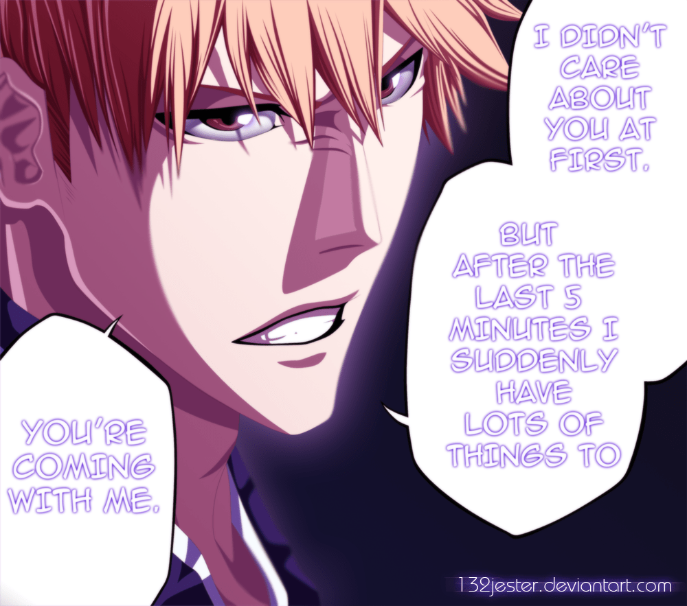We return to where Ichigo is, Ivan mention’s that Ichigo’s Bankai had not vanished. Surprised Ichigo looks at Ivan, with the “what do you mean?” face. Ichigo says that he doesn’t care about him, but what had recently happened is important, so he wanted him to come with him somewhere.