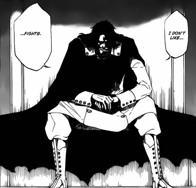 The King’s empire who sits on the large chair, mentions that he doesn’t like to fight. He then says that, for the sake of peace he wants to hear their report. The chapter ends here. To me this seems as though, in their icy world there could be a lot of chaos and peace-less. Therefore they had blamed the Soul Society for this, thus their plan on destroying them in 5 days.