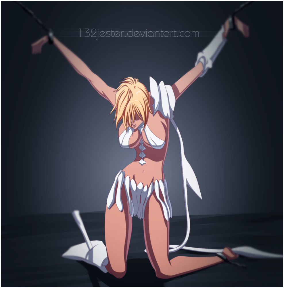 At the point of taking the cloth off, we see another member of the Espada! Tier Harribel has been tied up with chains, she seems to be unconscious and unable to fight as she’s bleeding from her mouth. The King mentions that Hueco Mundo is already their territory as it’s just another foundation stone for them to invade the Soul Society. The chapter ends here!