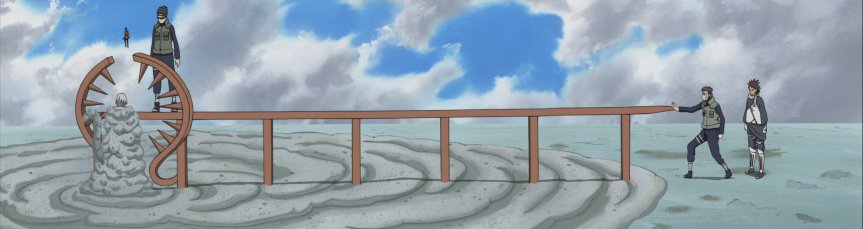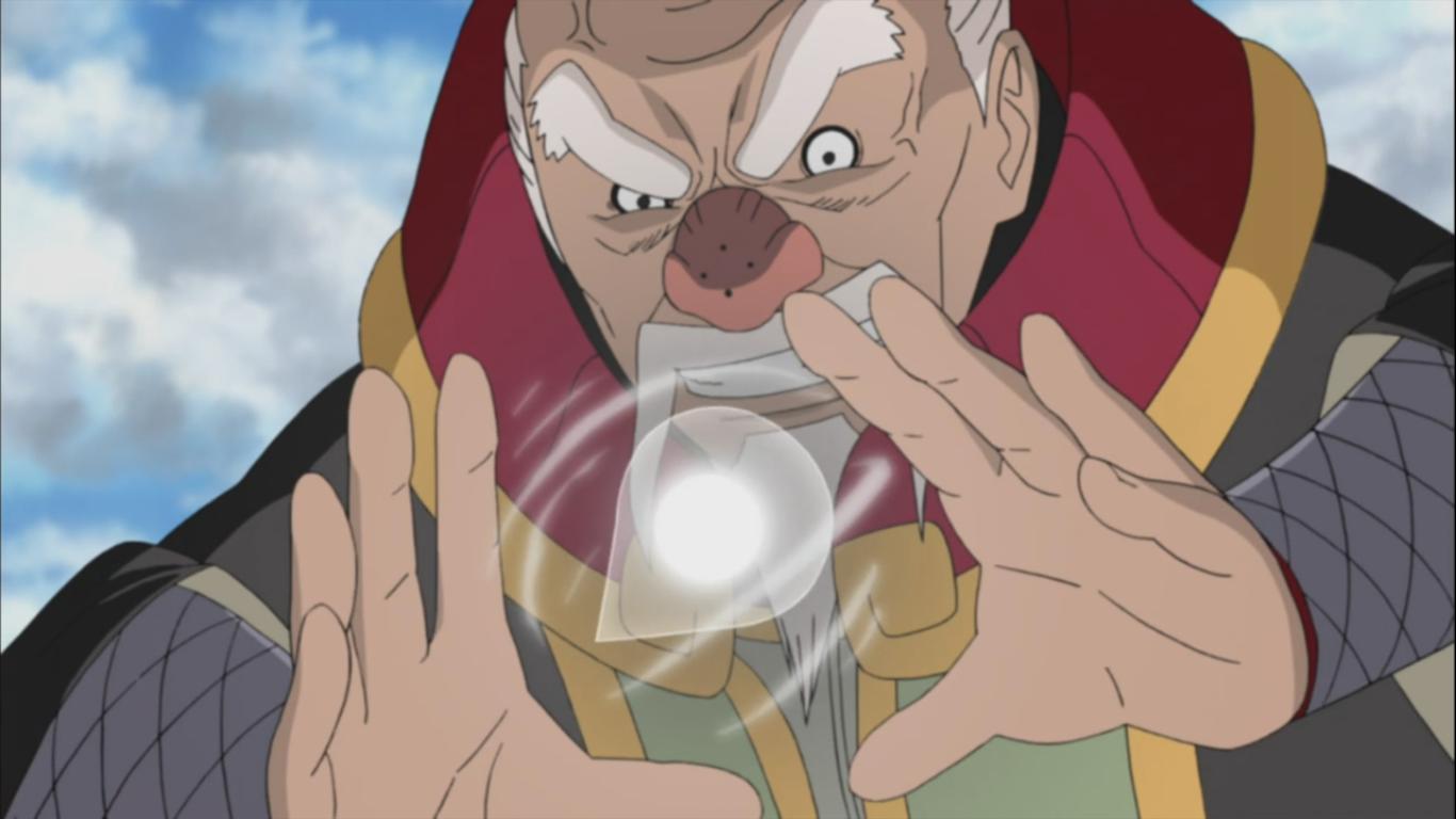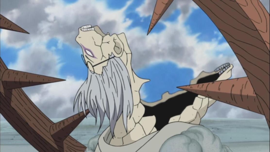 Kabuto lands on the front of the turtle to find out that Onoki has been following him. He tries to release his Dust Technique, only to find out that he can’t because he might hit the turtle. As Deidara fly’s up, Onoki follows him to get clear so he could use the technique.