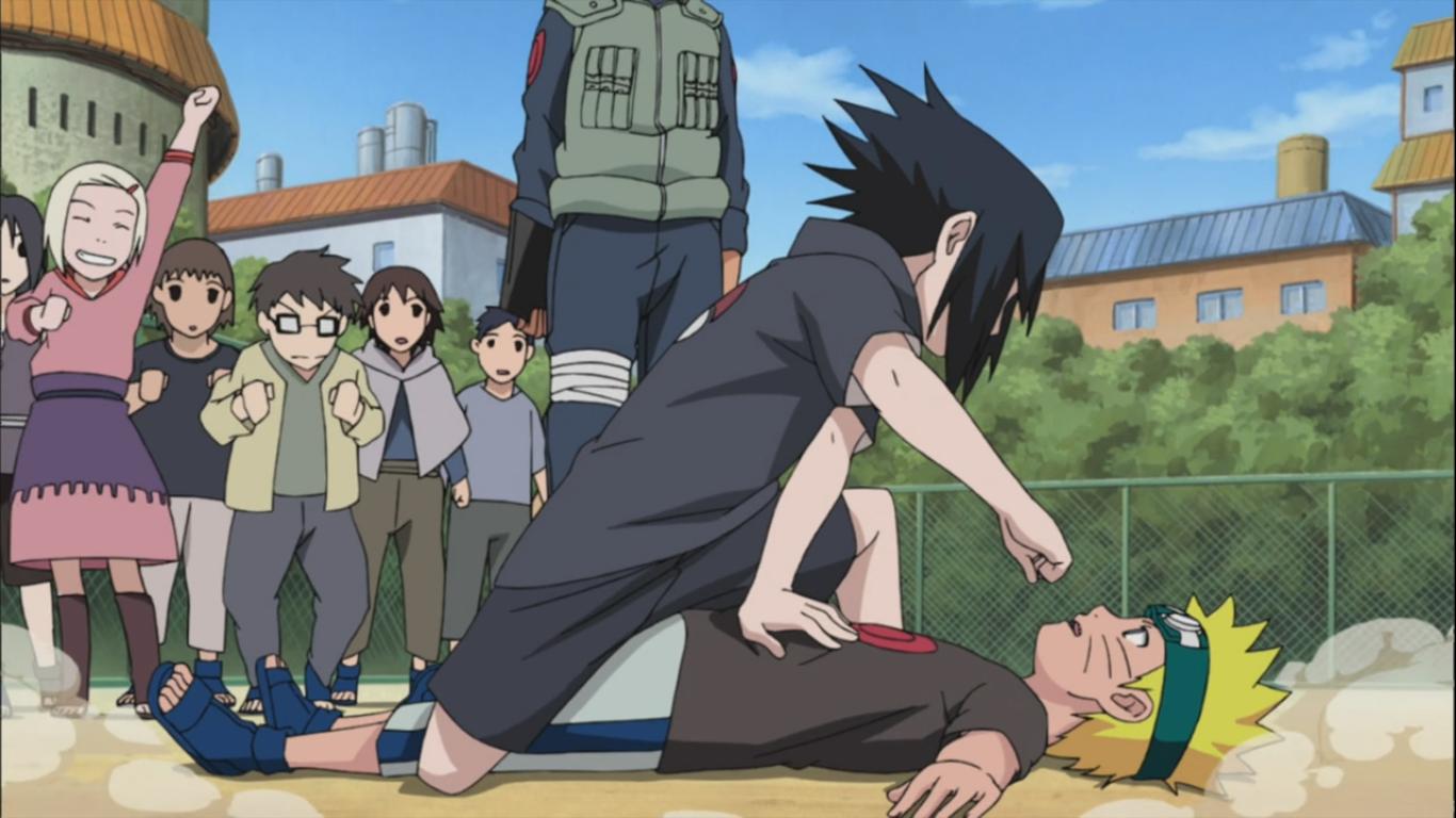 As time goes on, Naruto starts to request matches with everyone, and every time he looses. At this point he faces Sasuke. The current situation is different as when Naruto is beat, he notices in Sasuke’s eyes that all the anger he has is not for Naruto but for someone else, possibly his brother Itachi.