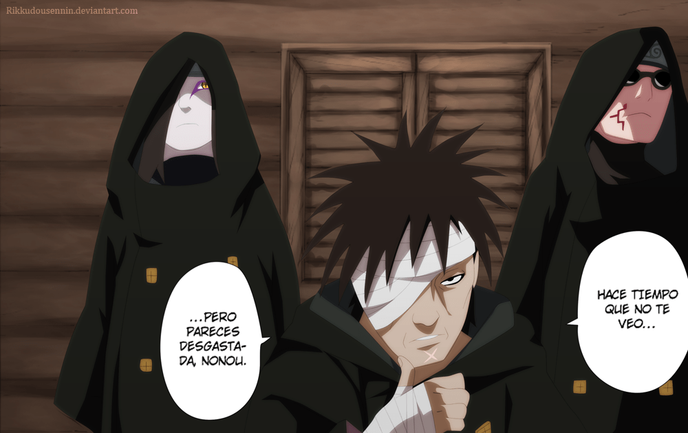 Orochimaru and the other person say that it would be easy for a thief to get into the building, or for the children to be easily kidnapped. Nonou understands this and accepts the mission as Kabuto watches from a small gap. Danzo notices him, and asks for a child to be put into their hands so they could train him for the sake that one of the men died while retrieving this information.