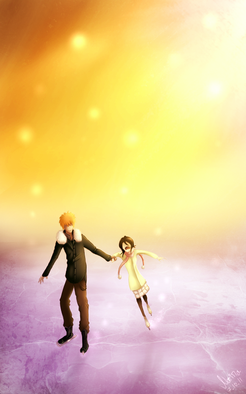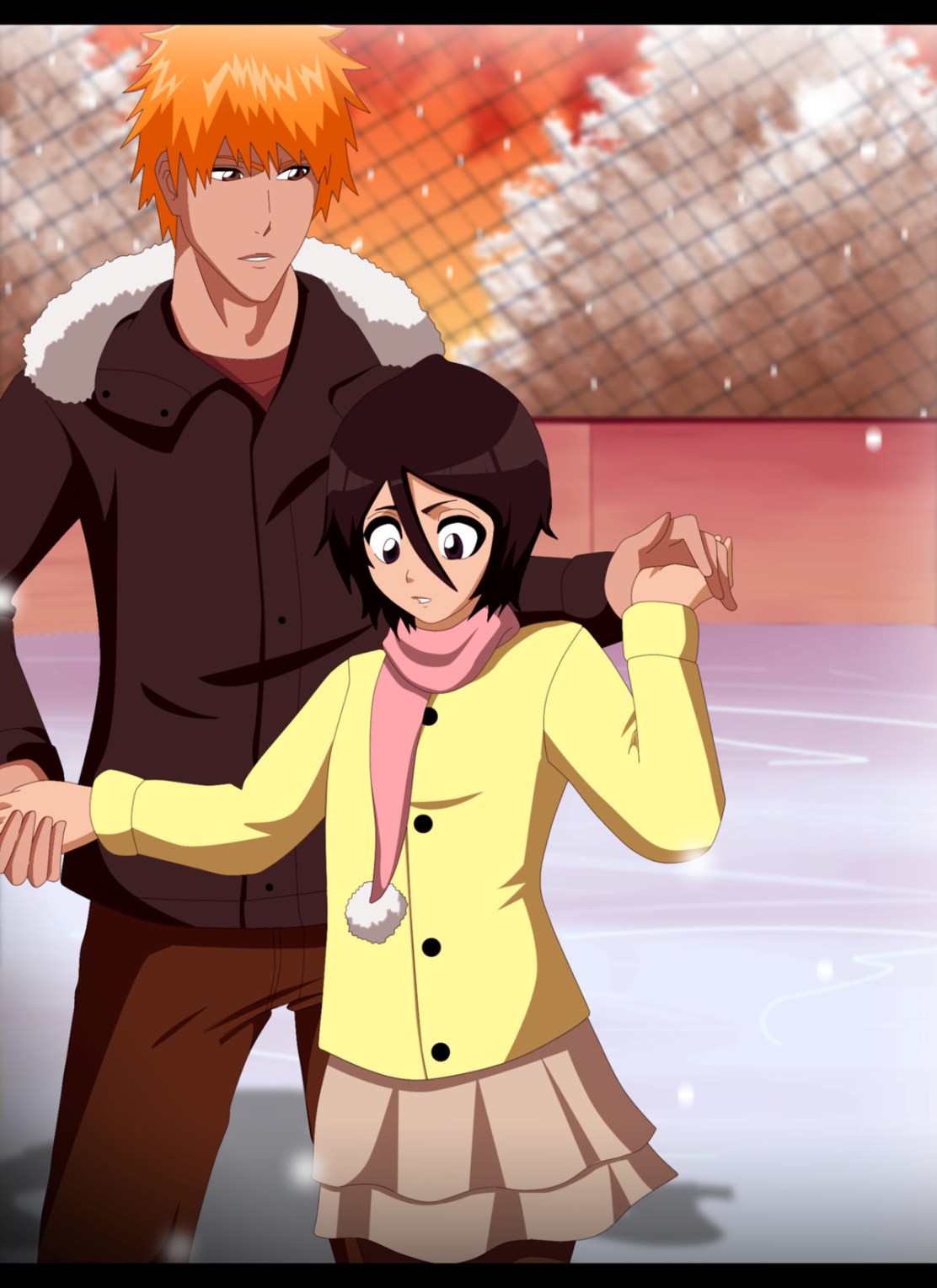 Do you remember the moment when Ichigo invited Rukia to go ice skating with their friends? Bleach Episode 342, Ichigo is at the point where he’s are about to be lost. Ichigo and he’s friends are able to ride normally, but Rukia needs some extra help so Ichigo goes on ahead to help her by giving her a hand. She gets the hang of it and enjoys the day.
