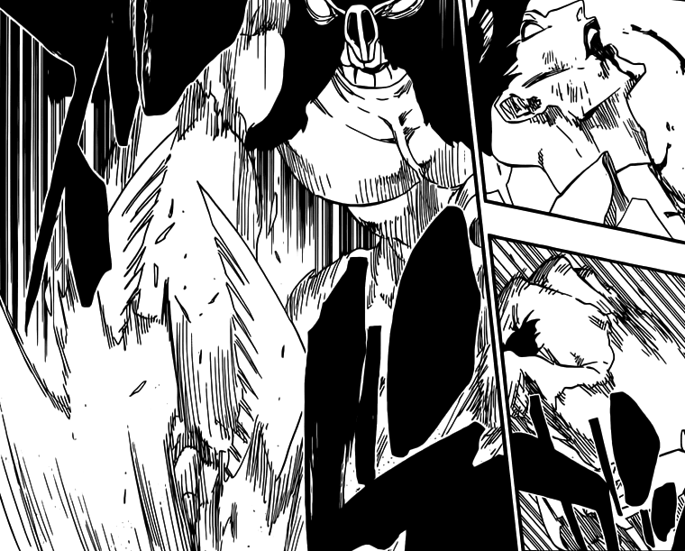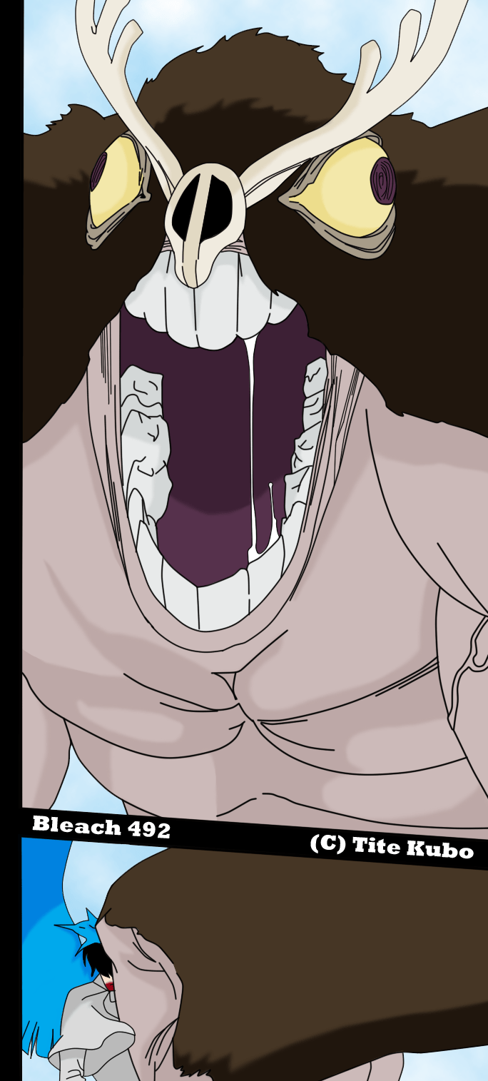 We start Bleach 492 with Ayon being called out. Apacci, Rose and Sung-Sun tell Ayon to attack him. I didn’t know that Ayon had feelings, but here he shows some because he looks at them three to see what had happened. He screams as laud as he cans showing his full face.