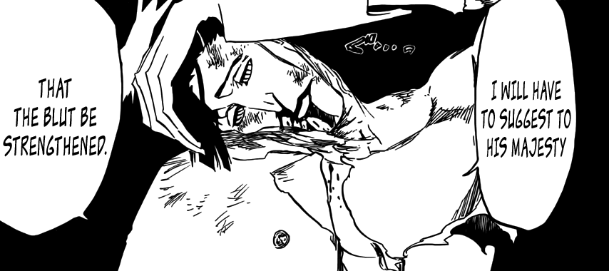 In Soul Society, Shino and Yuki are told to see the 6th Seat Kajoumaru who will put them into a station for them to work at. They run to find Kajoumaru. Yuki tells Shino that he’s confused about why they are actually fighting the Quincies. Shino shouts at Yuki that it’s because they had declared war on them. Yuki correct’s his question and tells her why they’ve been enemies in the first place.