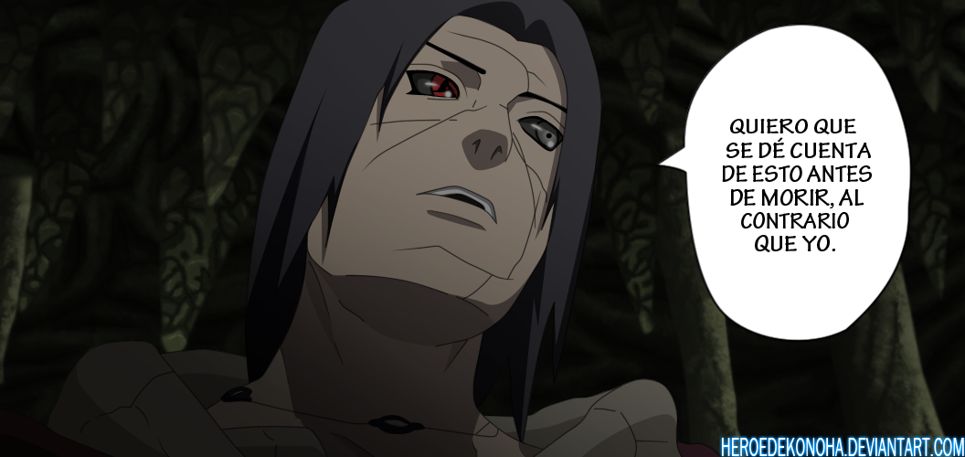 Itachi carries to tell Sasuke that he should always acknowledge his real self. This way he would not have to tell any lies, not even to himself. There is no trust in lies, you wont get any comrades to rely on Sasuke if that happens. In the Izanami loop, Kabuto keeps on attacking even if his chances seems bleak.