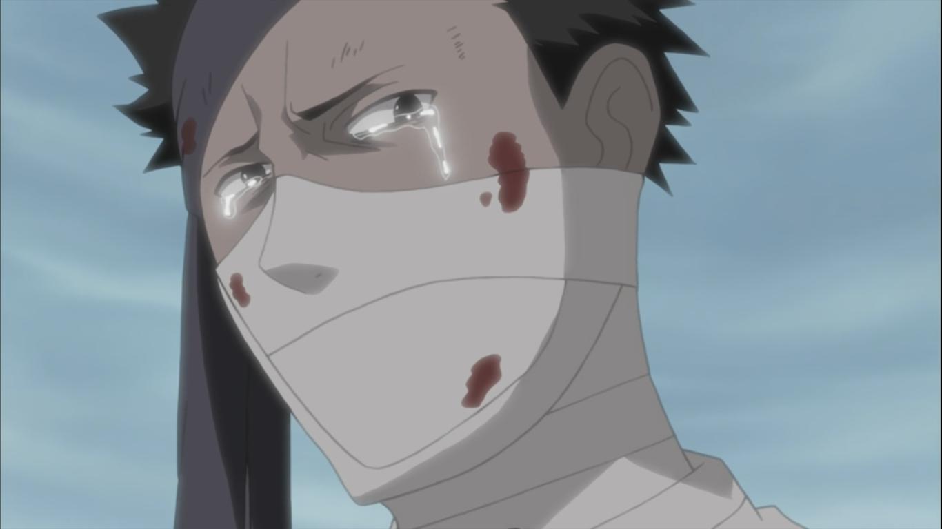 Haku tells Kakashi to stop them because last time Haku wasn’t able to protect his master, Zabuza. Kakashi corrects her because he was able to protect him during his battle with Zabuza at the bridge, Zabuza tells Kakashi to stop but he doesn’t there is another flash back to when Haku had saved Zabuza. This time Naruto cries for how Haku had died even if he doesn’t know him, Zabuza is seen crying because he knew that he had cared for him. Zabuza grabs a kunai with his mouth and kills all of them, then lies to die at the side of Haku.
