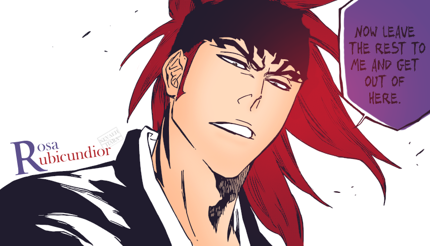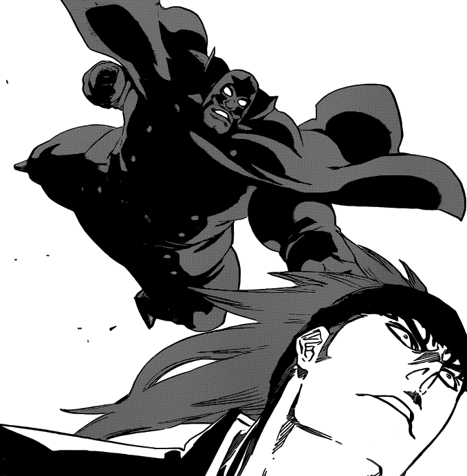 During Renji’s fight, he notices that his opponent, As Nodt is able to defend himself only using his hands because his attacks are doing nothing on him. He thinks about this and asks himself if this is only his ability or of all Quincies? Renji notices when he’s hit, a small mark is left on him, he decides to pick up the speed on his attacks to see what happens next.