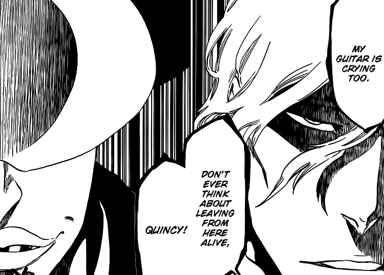 He reveals that where the reiatsu disappeared seemed to be Bazubi’s place, if he’s not dead, the moron screwed up. This Quincy’s name is NaNaNa Najahkoop! Rojuro asks him what he thinks friends are for, he tells him that he has no heart because Kira inspires Rojuro just like when Melodies flood into his head like tears. IF Kira dies, his Flying V would be sad too. NaNaNa tells him that he doesn’t understand a thing about the heart.