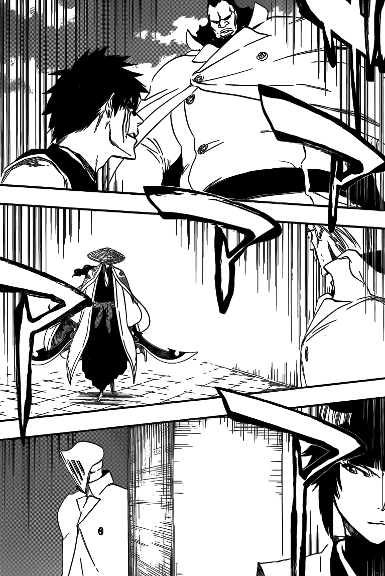 At other places, Shuhei Hisagi faces a large Sternritter, Shunsui Kyoraku faces another Sternritter which has glasses and Soi Fon faces a third Sternritter who has a mask on. Jushiro Ukitake faces another Sternritter who has wild scruffy half. Toshiro Hitsugaya also faces a Sternritter who seems to wear a mask.