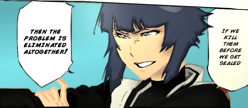 Captains got trolled like a boss. You wont see Byakuya scared like that very often. I suppose there is no chance for them to win so i after all this i expect a retreat to human world. At least some of them will manage to escape. 😛