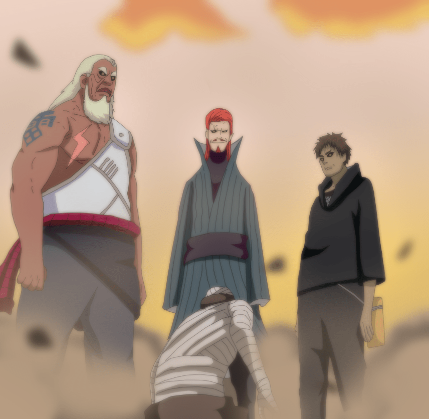 Kinkaku and Ginkaku were all spotted. They are the Gold and Silver Brothers. Shikaku relaxes Raikage as he needs to be as safely as possible so he could give orders and send them to victory. Shikaku reveals his plan to Raikage and Tsunade, they both agree and it’s taken into action.