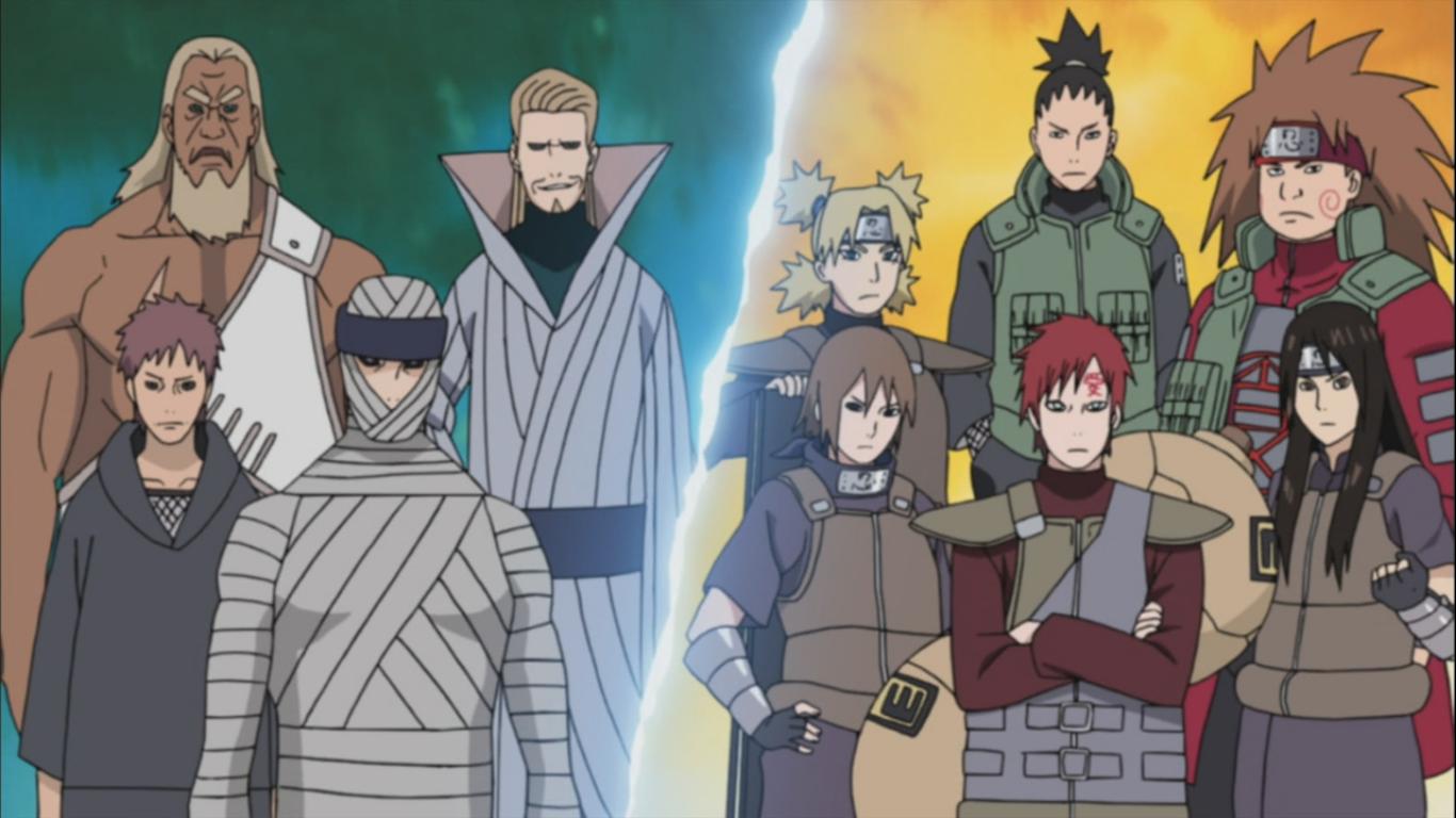 Naruto Shippuden 267 starts with Mu summoning 3 Powerful characters to the sands. The Second Tsuchikage had summoned the Third Raikage, Second Mizukage and Fourth Kazekage. They wake up and notice that they are alive and being used by the Edo Tensei. The Second Mizukage realizes that Second Tsuchikage had killed him while the Mizukage had also killed him. Basically they killed each other. They all wish they could fight each other at this point, but they can’t because they can’t move to kill each other.