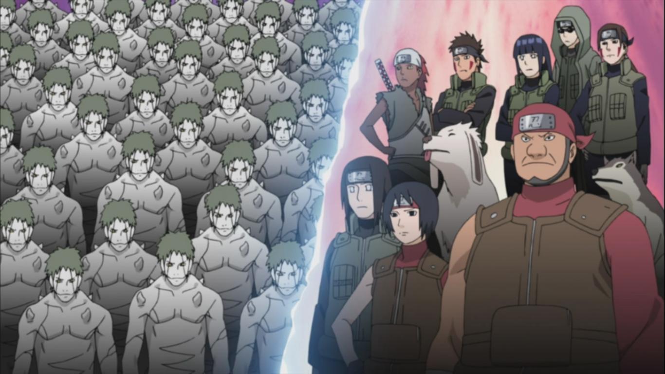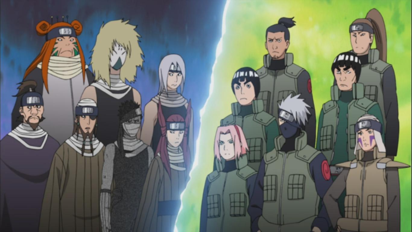 Shikaku comes up with an amazing plan now which impresses both Onoki and Raikage. The Raikage tells Tsunade that this is the reason the Raikage was never able to defeat the Leaf, because they have such great thinkers. Onoki tells Shikaku that his plan is fantastic, except for one thing! Mu has the ability to change his usability and is able to have Kekkei Tota. He’s able to do Blood Expansion. Onoki tells him that he must go to where Gaara is located and help him out. The plan is told to everyone and is spread to everyone else too.