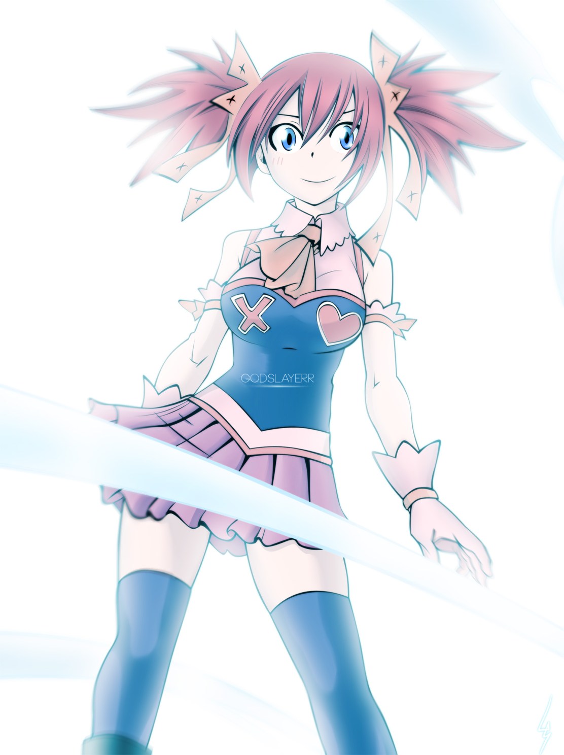 Wendy starts out by opening her Arm Vernier! Enchant! then she says Sky Dragon’s Talons which moves air in a circular wave which is directed at Chelia herself. Chelia gets hit but after a few moments, she uses her Sky Gods Magic, Ploias, which redirects that winds and throws it back to Wendy.