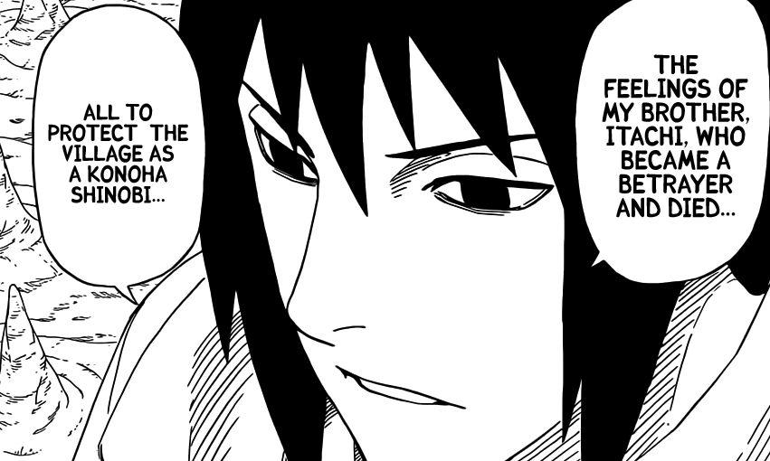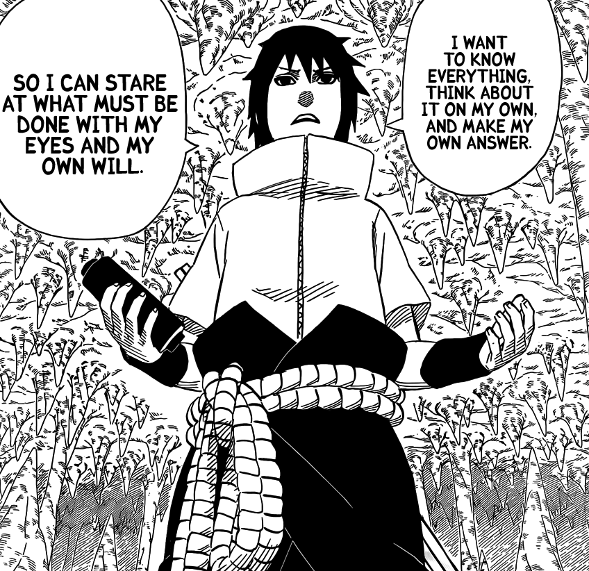 Sasuke wants to know everything! Think about it on his own and make his own answer. So he can state at what must be done with his eyes and his own will! Orochimaru quickly comes with the answer that he was manipulated by Itachi, because he’s far different from when he and Tobi were using him.