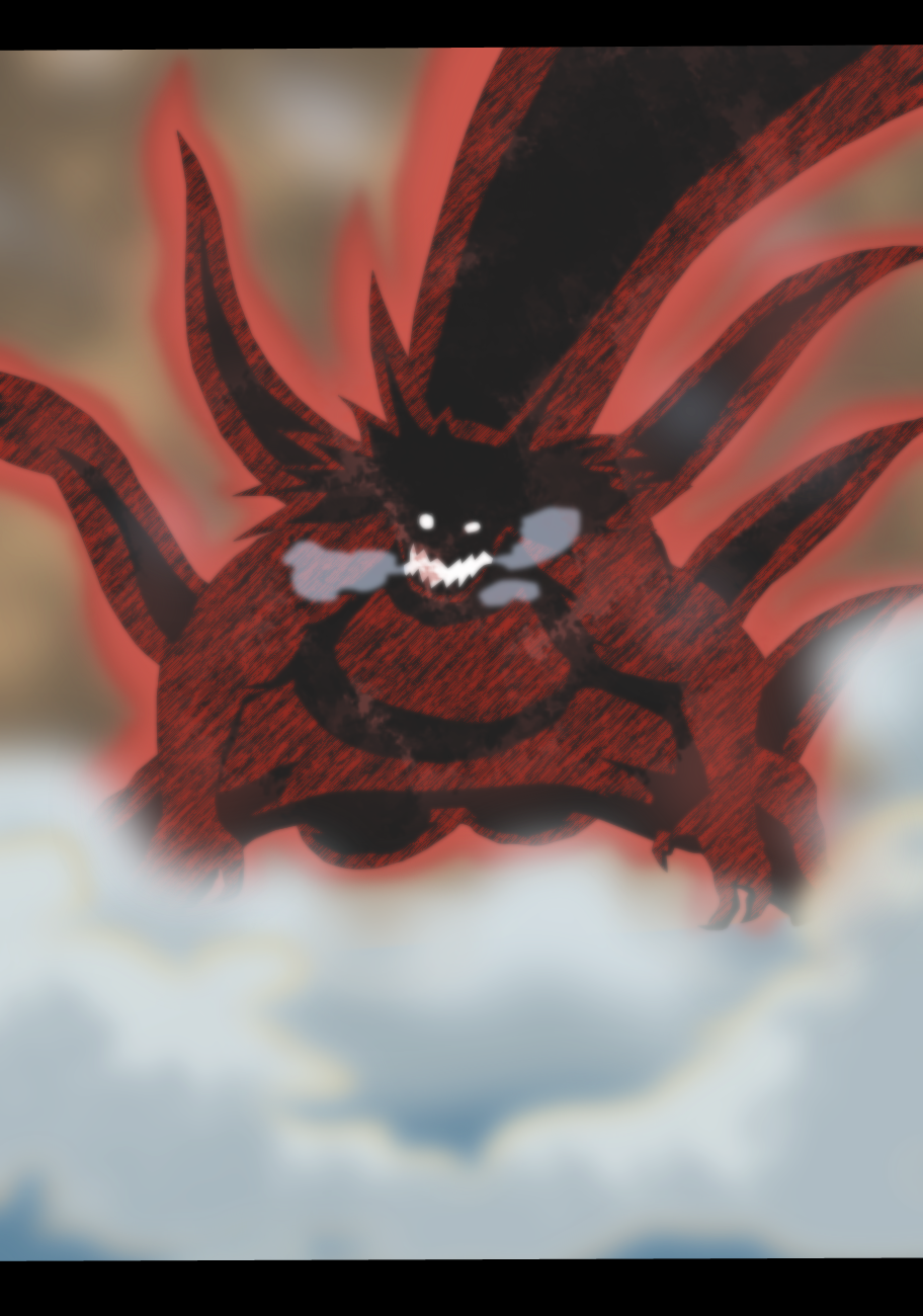 Kinkaku keeps on getting stronger as he transforms more and more, Darui calls it ridicules and then says sorry, Kinkaku tells Darui that it’s too late for him when he attacks and Darui escapes it. Choza notices that he looks very familiar to a Jinchuuriki, one of the older Shinobi’s tells them that long before Uchiha Madara was in control of Kurama, the Hidden Cloud tried to capture Kurama. At this point, Kinkaku and Ginkaku were swallowed, after two weeks they came out looking like that.