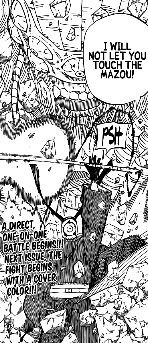 Amazing chapter!! It’s going to epic. But I dont think Naruto will be able to defeat Tobi because Tobi is just too experience and too powerful. He’s gone up against his father Minato and survived. So it’s possible that Tobi is a lot more powerful… But if Naruto and Sasuke face Tobi and (maybe) Madara then it’ll be awesome !!!