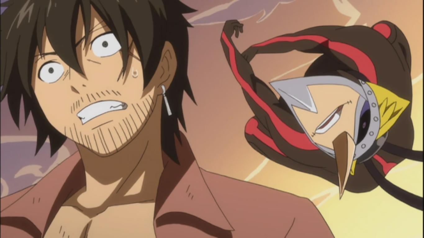 Cobra quickly wants to get right of them because they don’t know who Cubelios is, he uses his magic but Erza quickly steps in using her shield. She finds out that he uses magic which absorbed sounds, amplified it and fired it at them, it allows him to vibrate air around him.