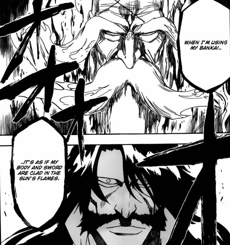 Yamamoto’s Clad of the Sun’s Flames Published on September 11, 2012 in Yamamoto’s Zanka No Tachi East & West! – Bleach 507Full resolution (755 × 804) < Previous Next >