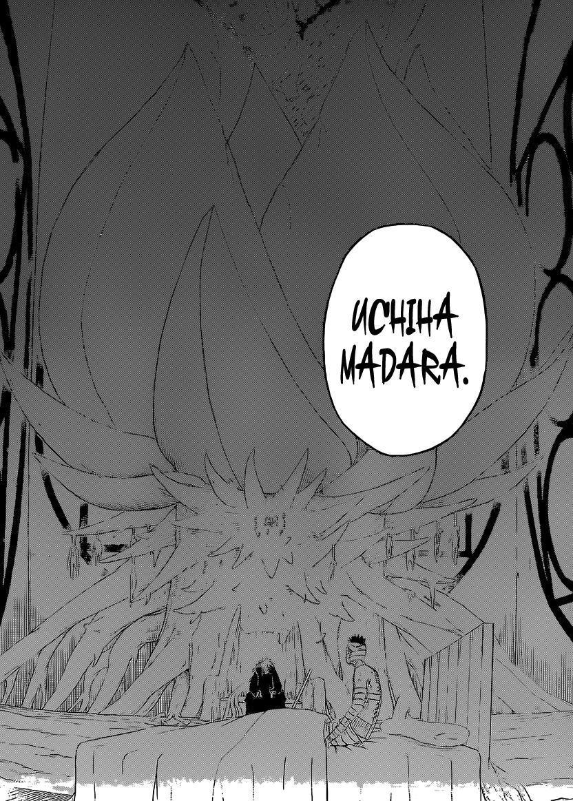 Madara tells him that he won’t be able to do so because he’s body is not even done being repaired. He remembers a few things but Madara tells him that he needs to look at himself as well as reality. The longer you’ll live the more you’ll realize that this world is full of nothing but pain, suffering and emptiness.