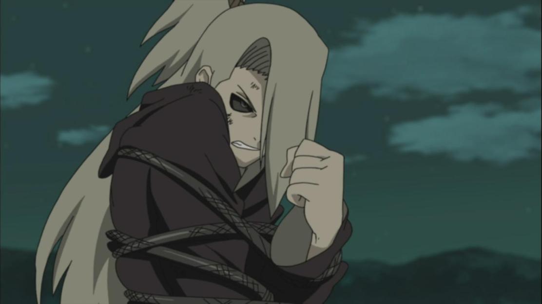 At this point, he reveals to Deidara that he’s Zetsu. He calls out for help, he then sticks his sword inside the whole when Kurotsuchi arrives. She tries to investigate by asking him what had happened and where Kabuto is. Deidara doesn’t reveal anything.