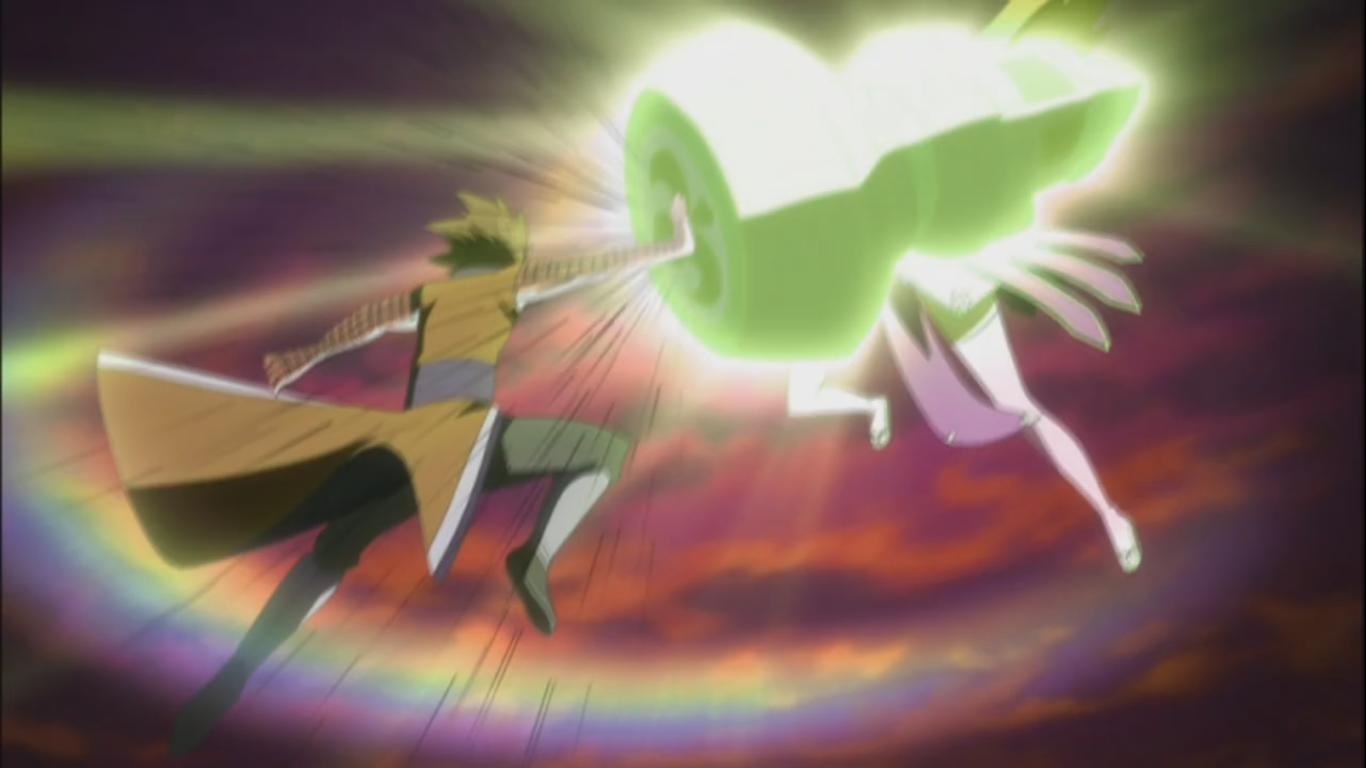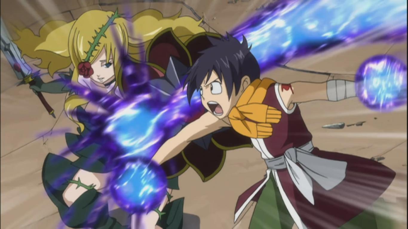All the people on the floor, like Gajeel and Gildarts start to do this. Samuel and Lily also make up and go to help out. Imitatia and Natsu keep on fighting. Cobra unleashes his power, he powers up and attacks Erza. She quickly changes and takes out her hammer which allows her to stop the attack.