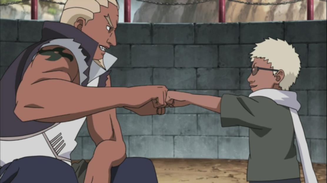 Bee reminds the Raikage of some old memories of how it was like with both of them. The Raikage remembers the old times when A was trying to pick a partner for his body-guard as well as perform a perfect Double Lariat. The kids keep on going, one of the other they all fail and just roll over.