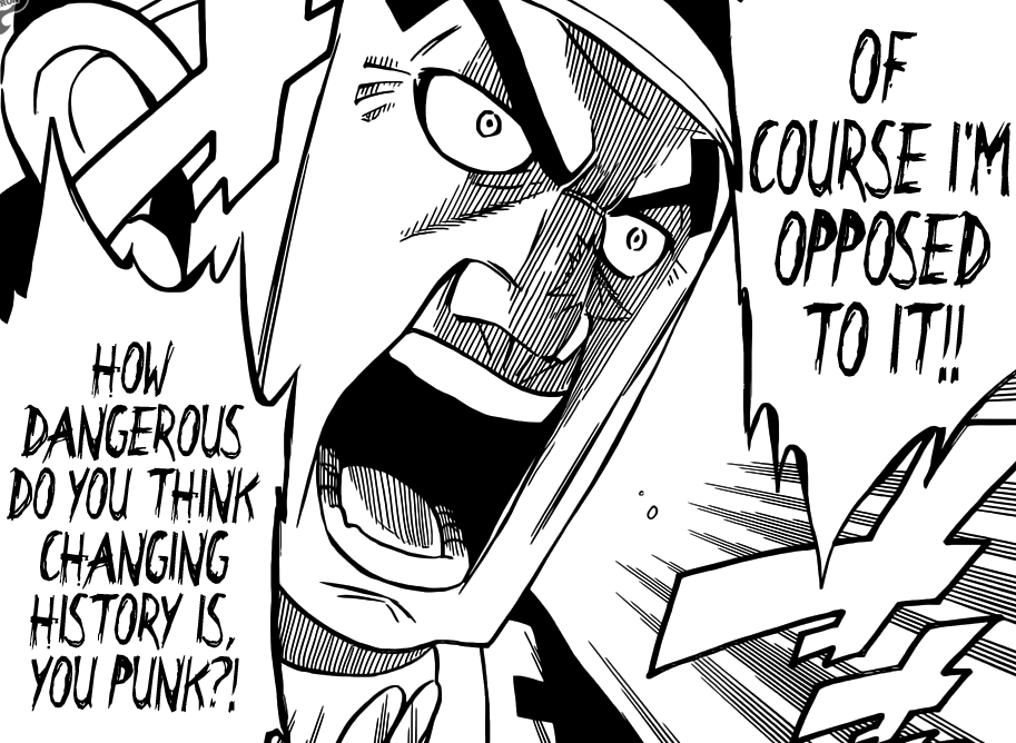Arcadios compliments Natsu on the great fight which he had against Sting and Rogue today, Natsu doesn’t give a crap about any of that, he gets into Arcadios’ face and tells him what he’s plan is with Celestial Mage’s, he there’s something he wants to say, he should spill it out.