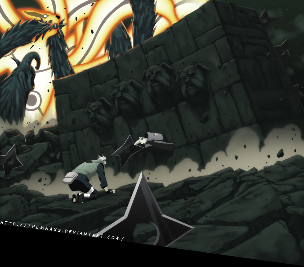 Naruto tells both of them that he won’t let him kill his friends. Kakashi notices this as it was said by Kakashi in the past, he mentioned the same exact thing. Kakashi says sorry that he had taught him Obito’s words. Kakashi gets more angered at this point.