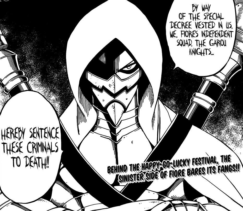 Arcadios then explains that their presence makes returning alive from this Hell Palace impossible. The leader of the ground states, by way of the special decree given to them, the Garou Knights will sentence these criminals to death! Fairy Tail 307 ends here!
