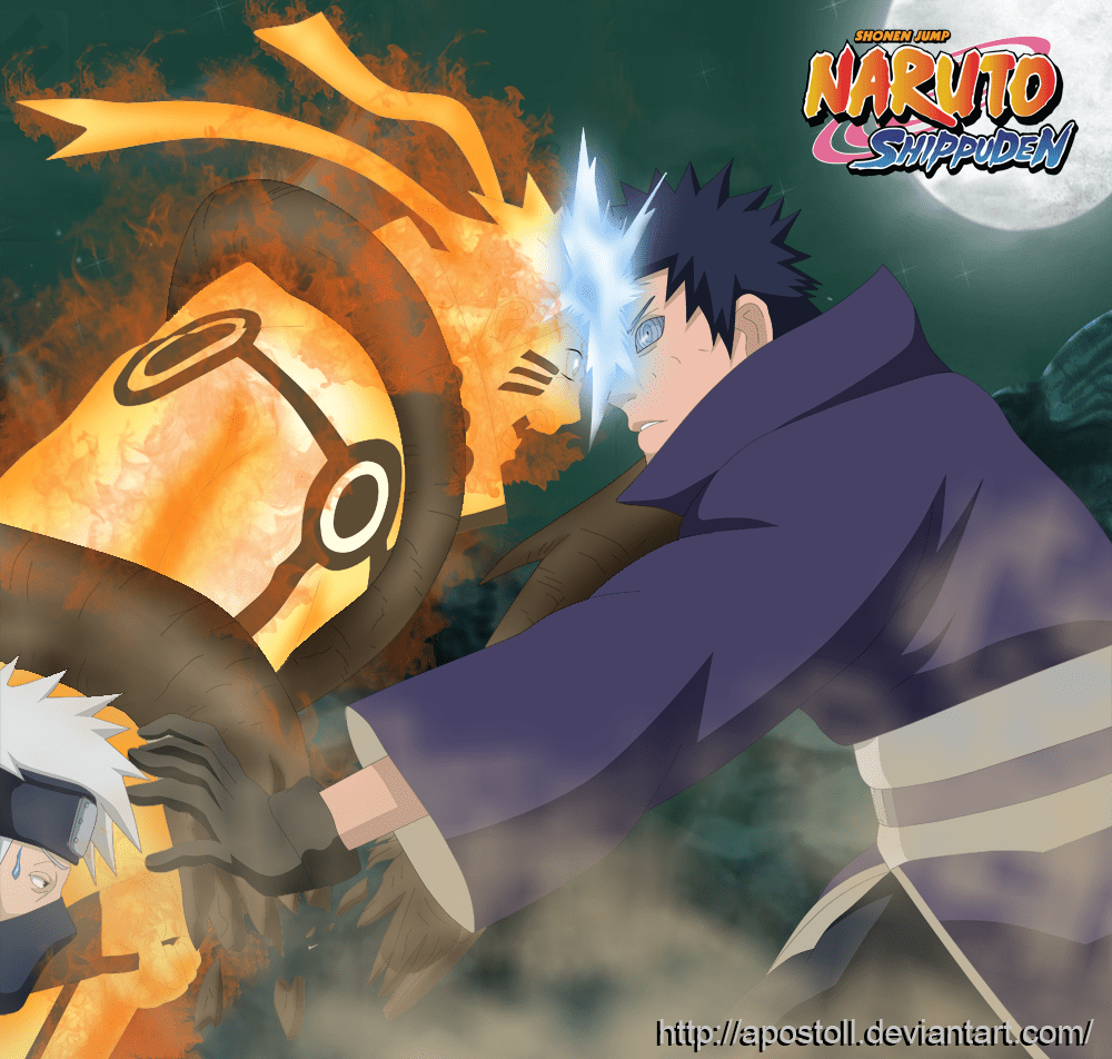They change, Kurama appears in Naruto’s body and calls to hold Kakashi’s hand, he then gives something to Kakashi, Kakashi is then swing towards Obito. Obito gets his chance and quickly uses his technique to get Kakashi within his dimension. Naruto has his stupid face to what just happened, he asks Kurama why he did this, Naruto takes over and goes for a punch, this goes through his body.