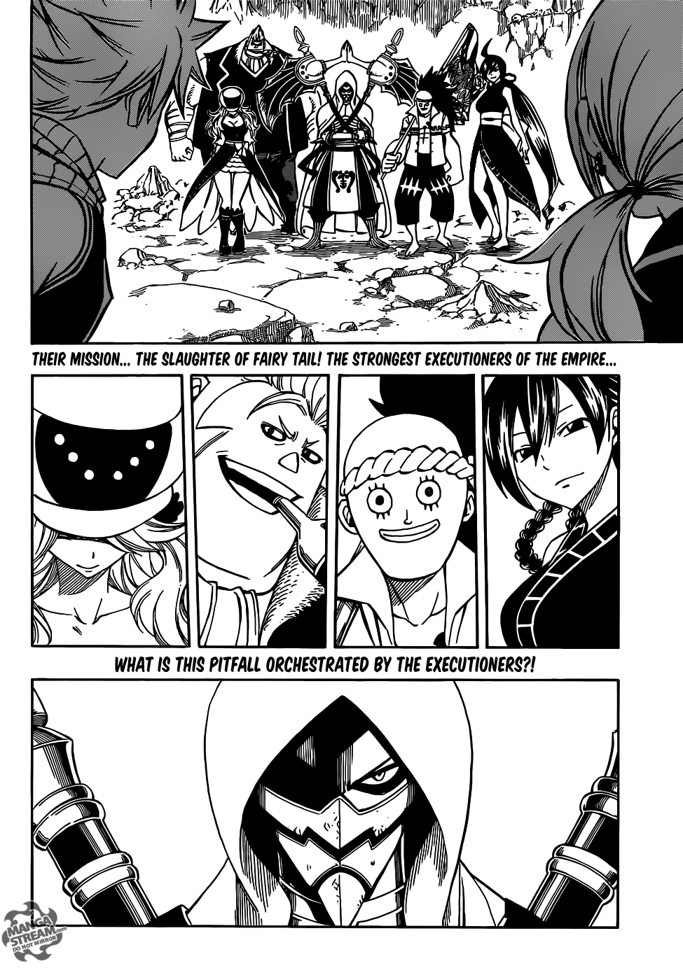 Fairy Tail 308 begins the long journey ahead of Fairy Tail as they go up against another formidable opponent said to be the strongest team which keep the Kingdom of Fiore in peace while they terminate all the enemies from behind. Fairy Tail are split up into different sections, all facing at least one person from the Executioners.
