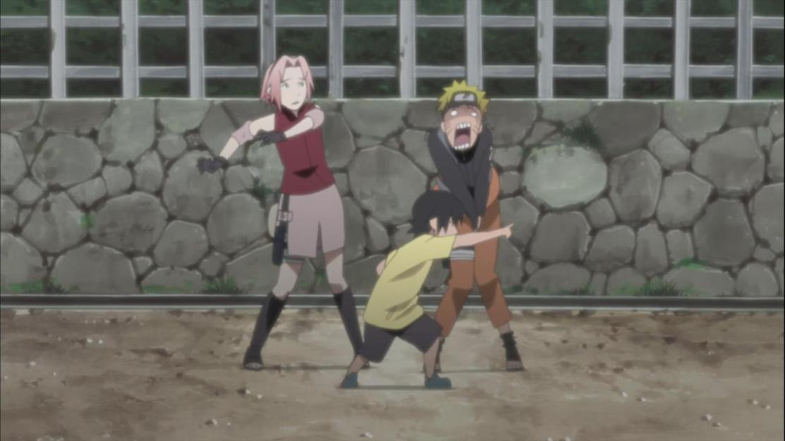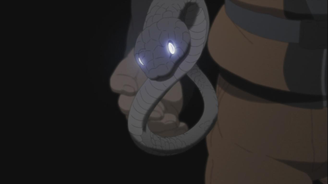 Naruto notices, they start to fall, Naruto quickly creates his Shadow Clone, and thus is able to hold Dokku in place. After all the trouble, Dokku and the kids say sorry to Naruto and Sakura. They introduce themselves, Leo, Lando and Faz, Sora and Mina. Naruto goes to shake Mina’s hand when she see’s that a snake appears from Naruto’s hand, it was a shock which she saw but didn’t really happened.