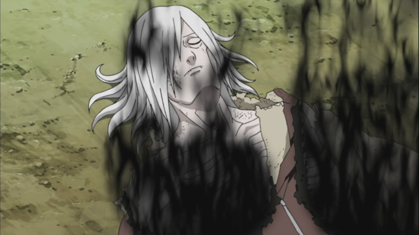 Itachi enables a jutsu, it seems like it’s Amaterasu, Bee tries to send one of his swords but doesn’t work as it’s pushed away by Nagato. Itachi enables the jutsu and somehow it interacts with the Eye which has been implanted into the crow. Kabuto is shocked to see what’s happened. The crow returns to Naruto.
