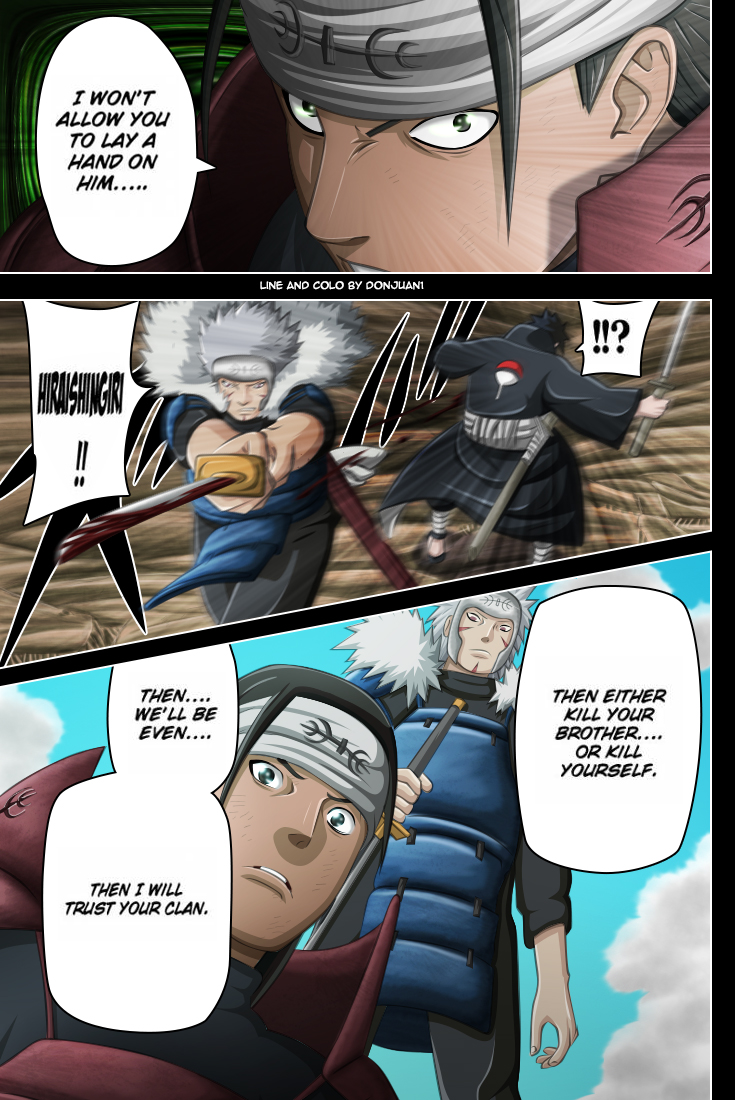 naruto_624_fast_coloring_by_deohvi-d5yok05 naruto_624__madara_by_inira-d5yp3tg naruto_624__hashirama_and_tobirama_by_donjuan1-d5yon60 naruto_624___the_intent_to_kill_by_the103orjagrat-d5yrty6 naruto_624___acuerdo_by_hikarinogiri-d5ylcnnMadara and Hashirama attack each other Madara enables Mangekyou Sharingan Hashirama don't touch Madara to Tobirama Izuna and Tobirama nearly killed Madara enables SharinganNaruto 624 keeps on revealing the past as time passes after their collision which just ends up in more hatred as Madara enables his Sharingan while threatening that Hashirama will die in their next meeting. After so many meeting, Hashirama keeps on asking for a truce while Madara keeps on getting beaten at each point. Once Madara is badly defeated, he mentions that the only thing for there to be a truce is for Hashirama to kill himself or kill Tobirama.