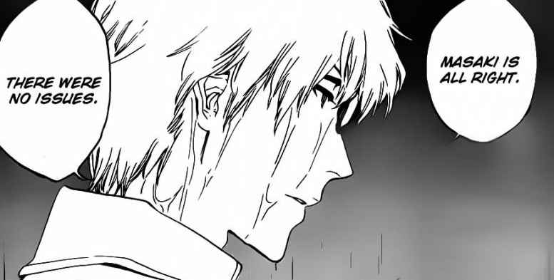 Masaki mentions that he was the one who saved her, if he wasn’t there to shield her, she would have be wounded, he mentions that he wants to call it even, she mentions for him to not move as she’s going to heal him. Masaki is asked how she defeated and who she really is. She thinks of a way to answers, she knows that the Shinigami’s and Quincies haven’t been on good terms.