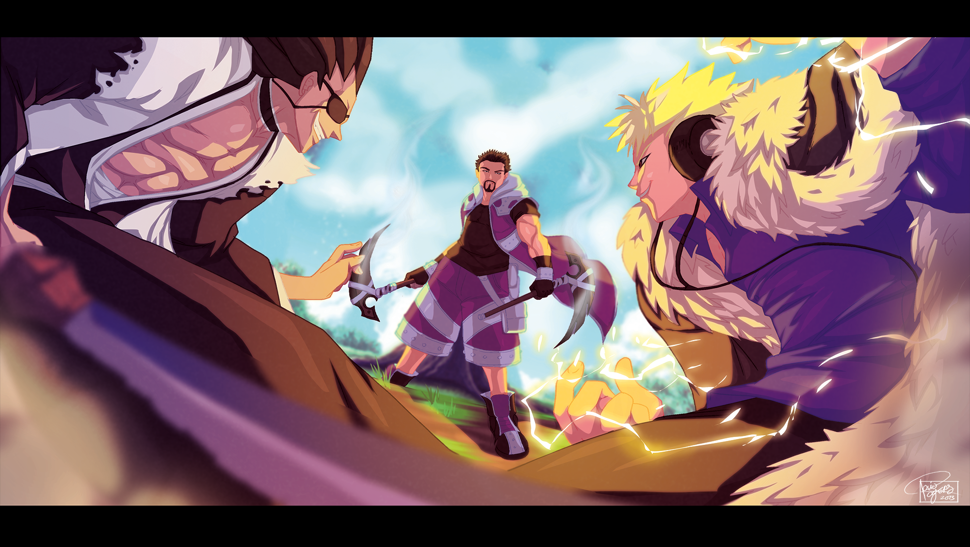 Ever thought who’d win between Zaraki and Laxus? Well there’s an image for that, as you can clearly see in the image above, Zaraki and Laxus are both very happy in going against each other, they smile and they go crazy. A third character is included which I personally think is the author who also wants to get himself in the action.