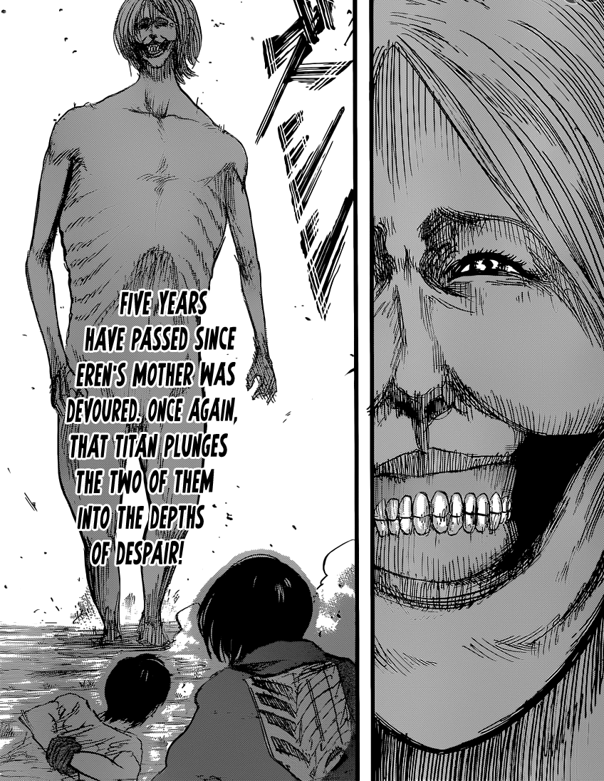Titan That Killed Eren’s Mother Published on September 10, 2013 in Irvin’s Arm Got Eaten – Shingeki No Kyojin 49 (Thoughts)Full resolution (848 × 1096) < Previous Next >