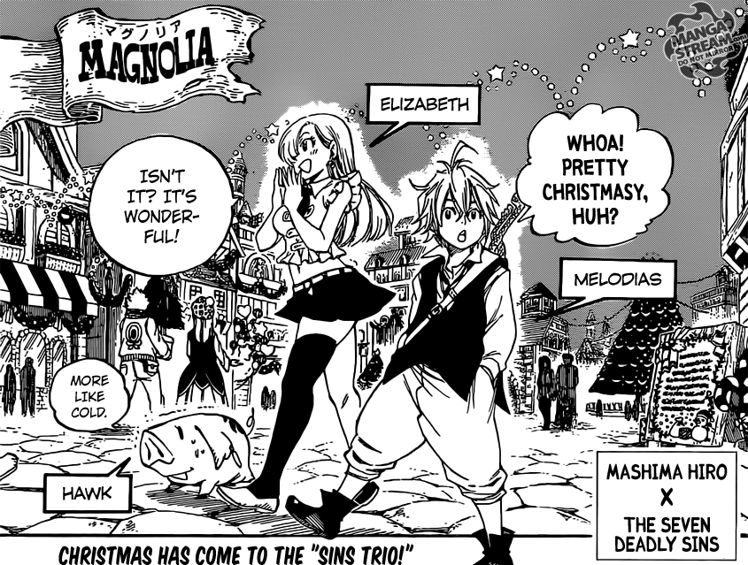 Melodias Elizabeth and Hawk in Magnolia Published on December 27, 2013 in Fairy Tail and Seven Deadly Sins Christmas Manga SpecialFull resolution (845 × 639) < Previous Next >